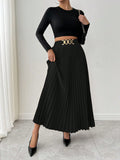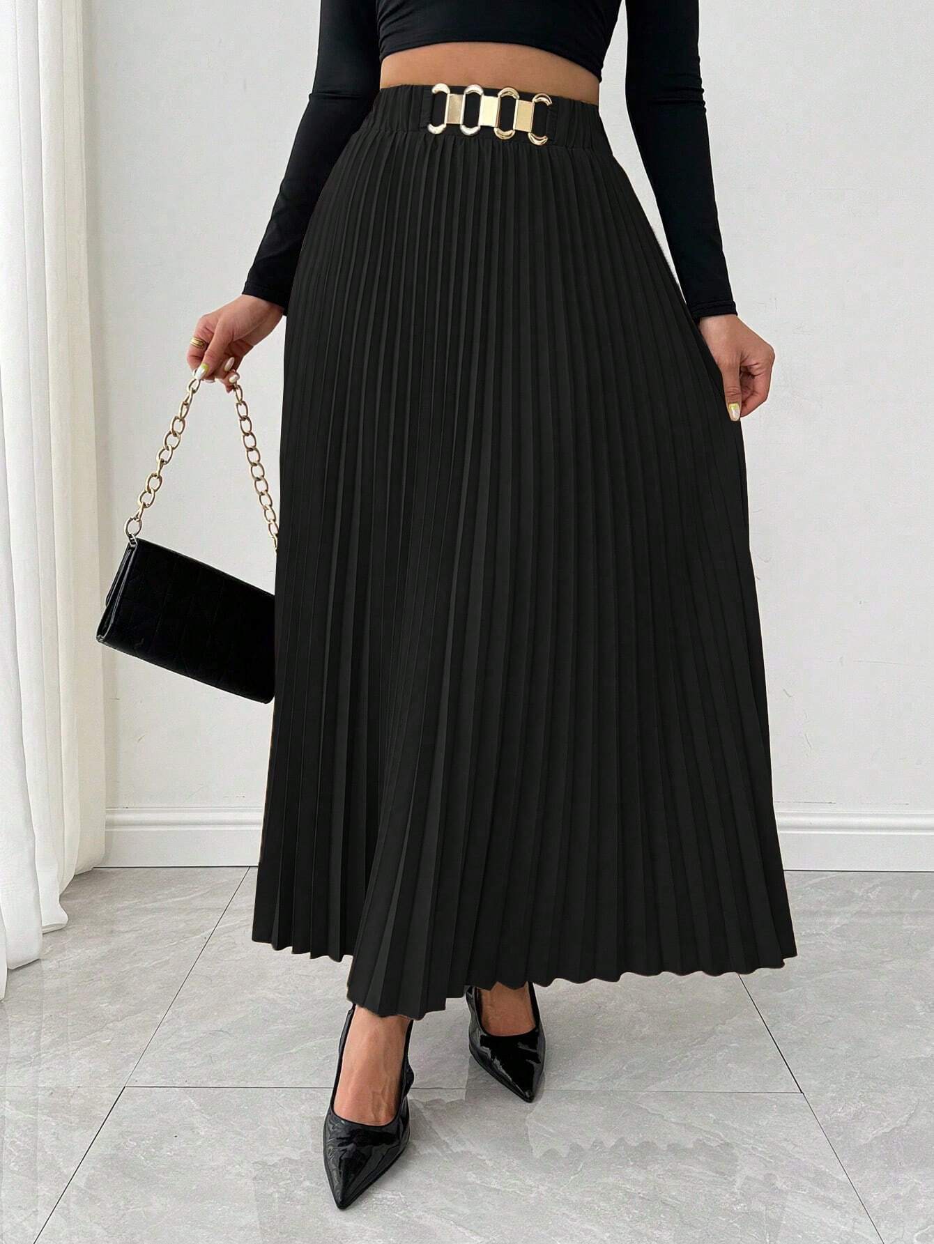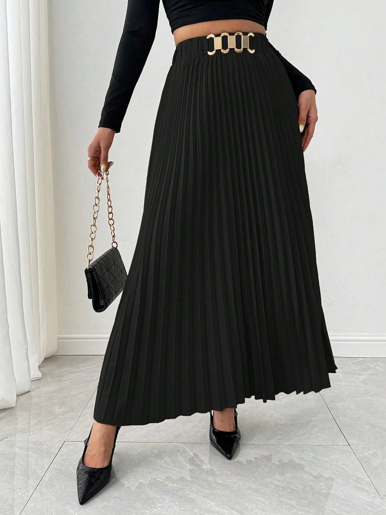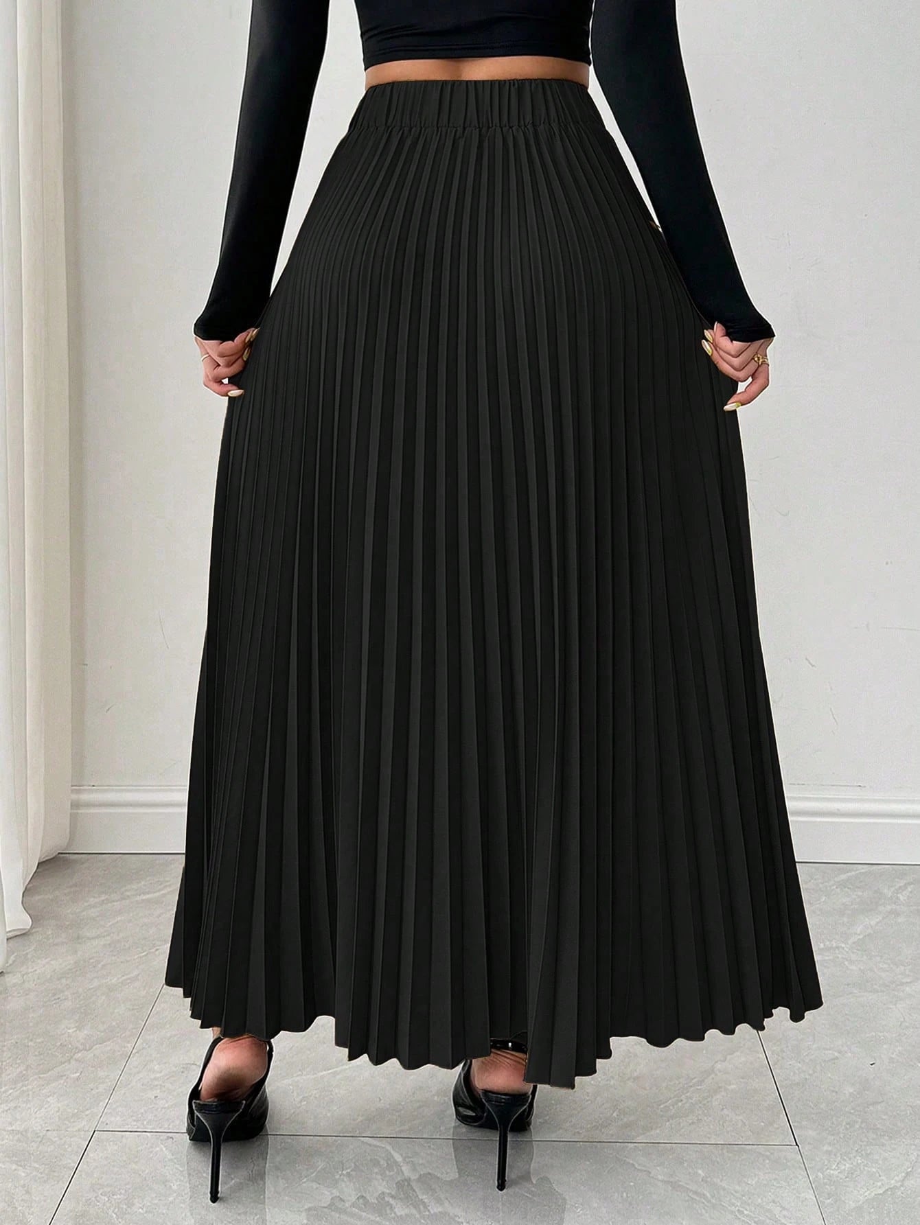 El plisado aporta un aspecto atemporal y elegante, mientras que el largo midi da un aire contemporáneo. Es la prenda perfecta para destacar con discreción y buen gusto.